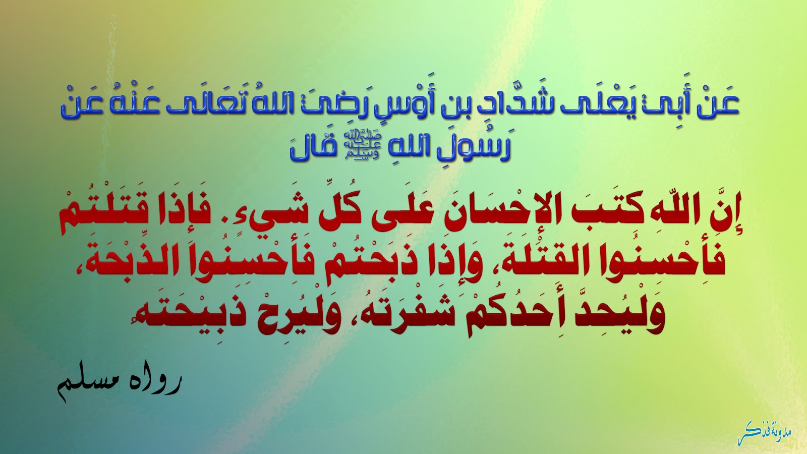 احاديث عـن أبي يعـلى شـداد بـن اوس رضي الله عـنه عـن الـرسـول صلى الله عـليه وسلم قـال إن الله كتب الإحـسـان عـلى كــل شيء فـإذا قـتـ Ahadith Alae Nlp